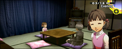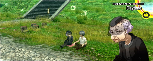 No segundo encontro, a idosa aborda o estudante e pede desculpas pelo outro dia. Ela explica que estava no hospital por conta de sua neta e aparência do garoto lhe chamou a atenção, já que ele a lembrava de uma pessoa conhecida. Inclusive, a semelhança de Yu foi o que a motivou retornar naquela noite. Antes de se despedir, ela menciona que nos dias de folga ela costuma tomar sol às margens do rio da planície de Samegawa. É a deixa que o jogador precisava para iniciar o seu Social Link.